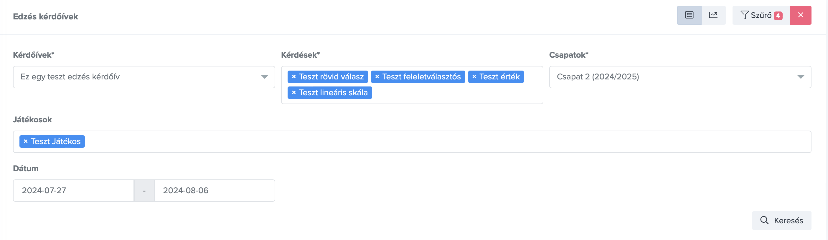 Először is a szűrő segítségével állítsd be az időszakot és a megfelelő kérdéseket.
