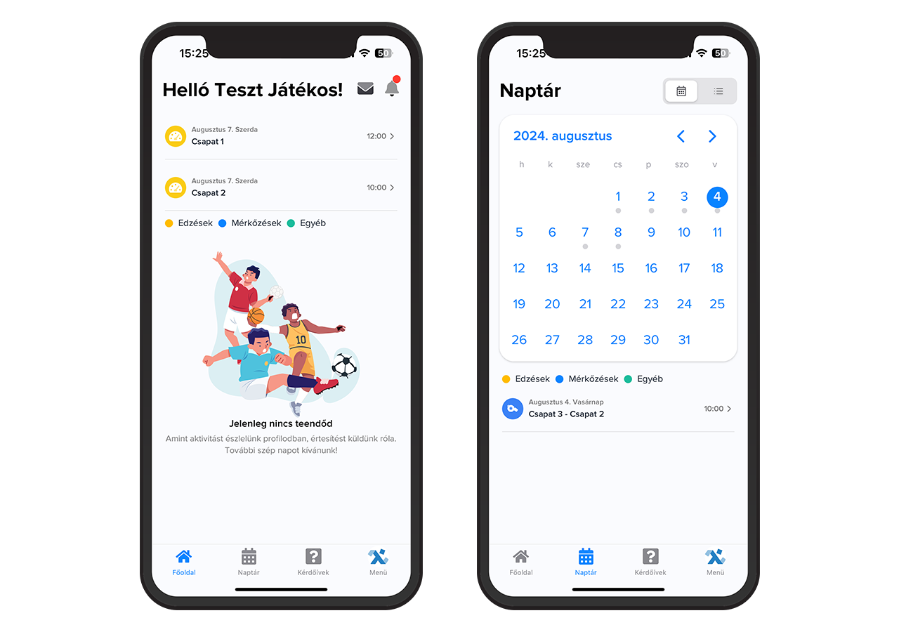 Amennyiben eseménynaptár nézetre váltanak, úgy a napokra kattintva, a játékos láthatja napi programját. Fontos megjegyezni, hogy ezek az események természetesen az edzők által feltöltött események alapján lesznek láthatók a játékosok számára, így fontos a precíz adminisztráció.