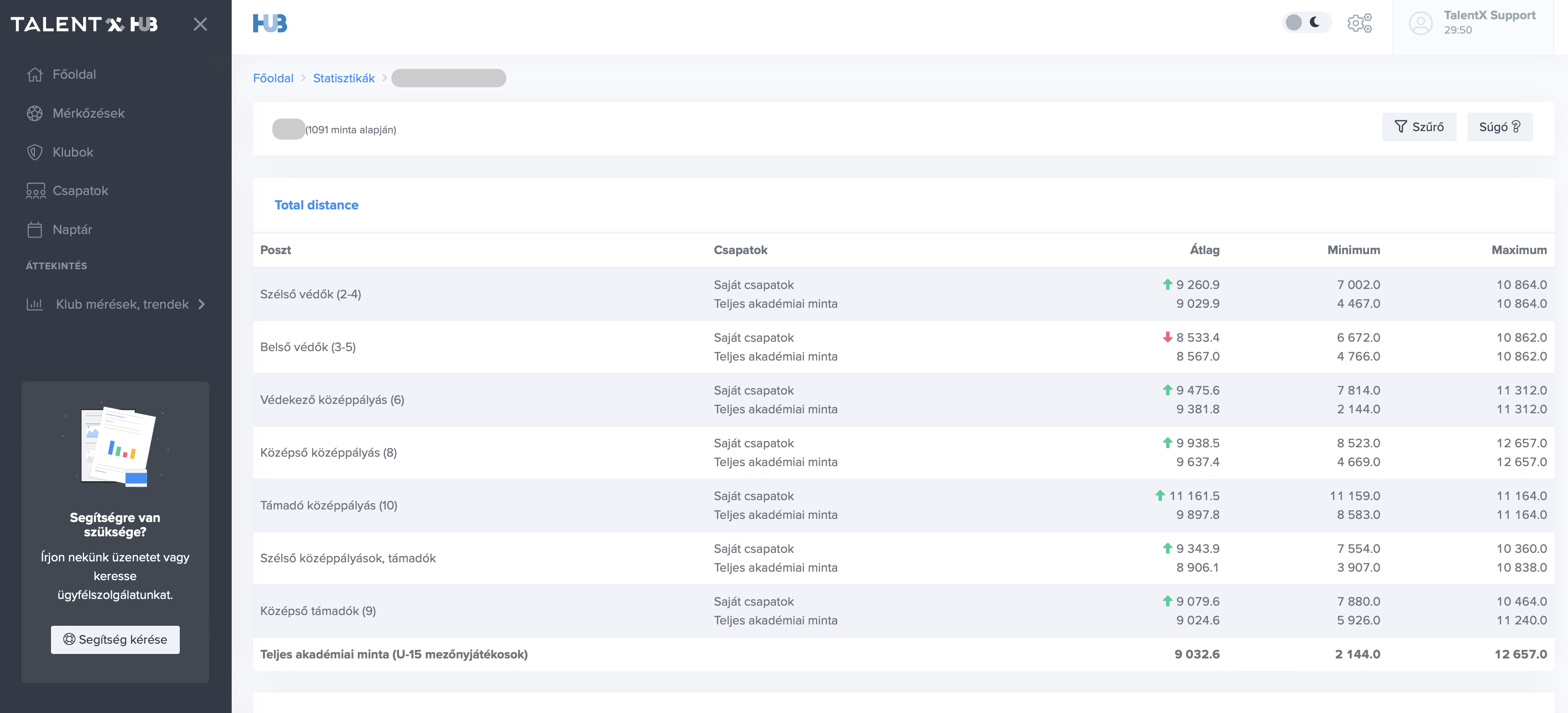 A mérkőzések teljesítmény monitoring adatait az Ügyfelek a saját TalentX AMS rendszerükbe töltik fel, a meghatározott szakmai eljárásrend alapján.