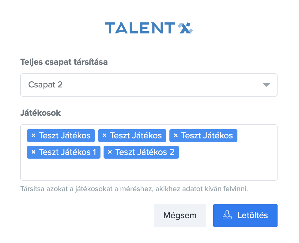 A „Letöltés” gombra kattintva, majd jelszavad megadása után a rendszer, egy a kiválasztott játékosokkal feltöltött excel táblázatot tölt le a gépedre.
