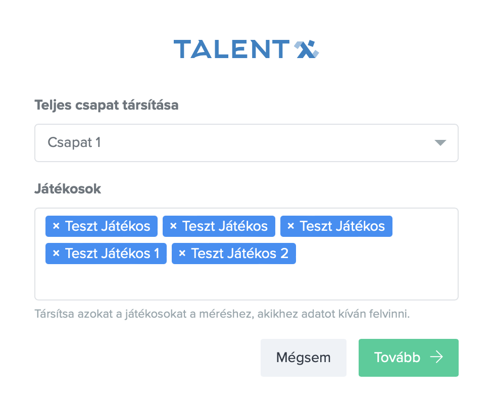 Válaszd ki a kívánt mérést, majd kattints a „Hozzáadás” gombra. Ezt követően lehetőséged van játékosok hozzáadására, de akár egy gombnyomással egy teljes csapat is beállítható.