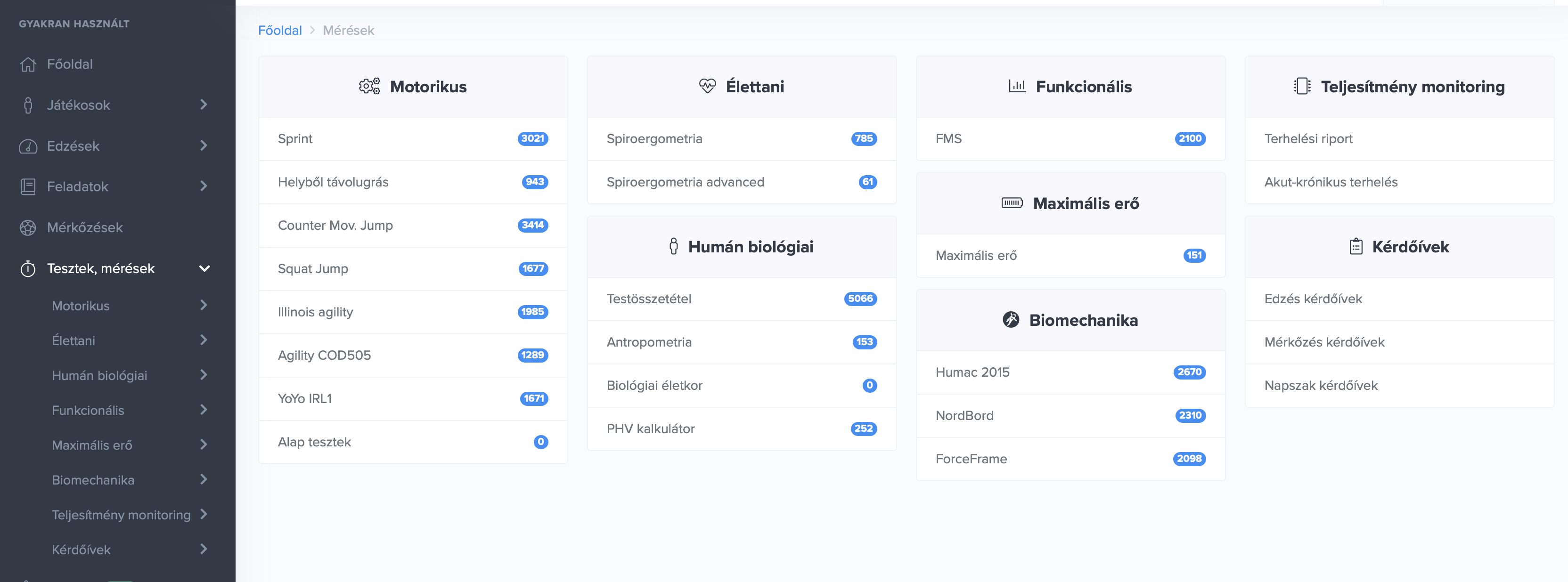 Az adatok feltöltésének leggyakrabban használt módszere a tömeges feltöltés fantázianévre keresztelt módszer. Ezt a folyamatot nem a játékos alól, hanem a „Tesztek, mérések” főmenüből indíthatod.